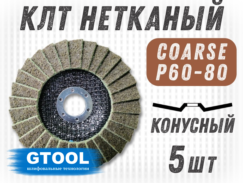 Круги лепестковые торцевые нетканые GTOOL, из нетканого абразивного материала TEX ROLL предназначены, для шлифовки, чистки и полировки легированных и нелегированных сталей, алюминия и цветных металлов.