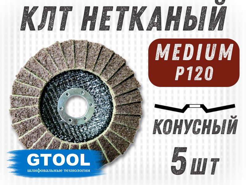 Круги лепестковые торцевые нетканые GTOOL, из нетканого абразивного материала TEX ROLL предназначены, для шлифовки, чистки и полировки легированных и нелегированных сталей, алюминия и цветных металлов.