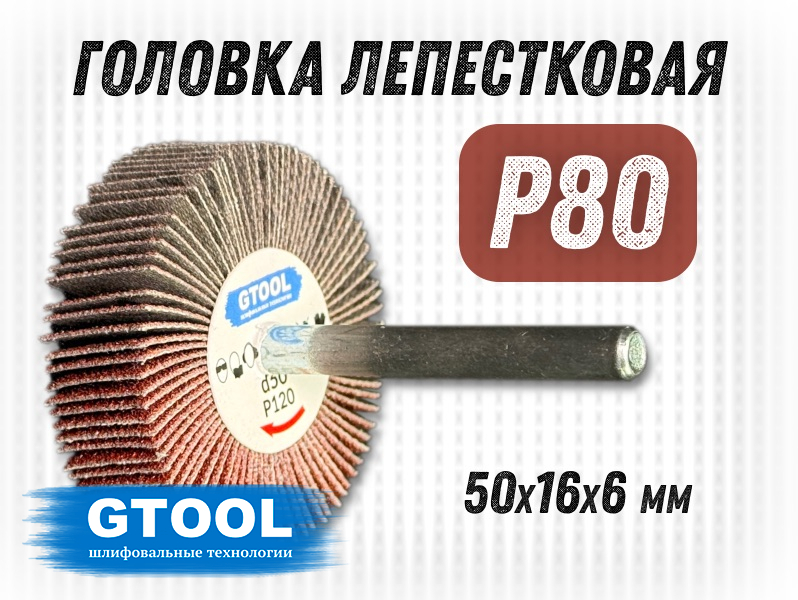 фото Круг лепестковый на оправке (КЛО) GTOOL 50х15х6мм, зерно P80, уп-ка 10шт
