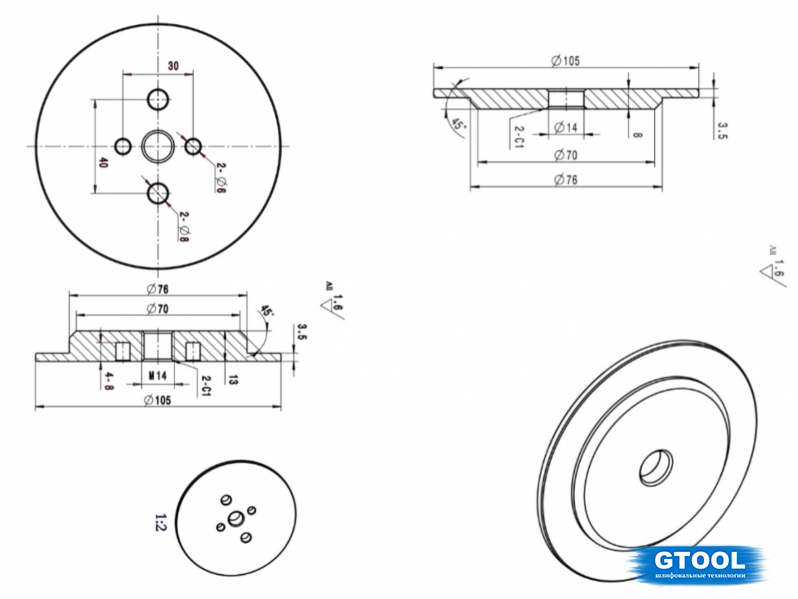 Металлические фланцы из алюминия предназначены для установки полировальных кругов с посадкой 76 мм на угловые и полировальные машины с посадкой М14.