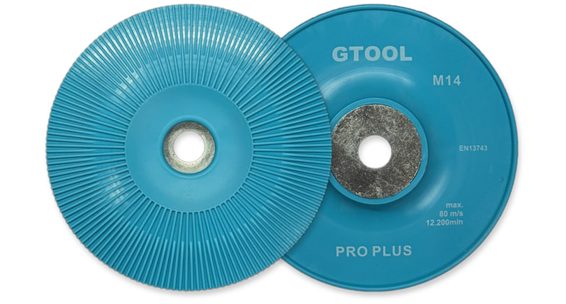В результате опорная тарелка под фибровые круги от Gtool эффективно работает не только со сталью, но и при шлифовке титана.
